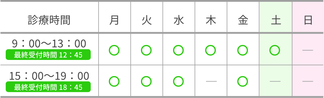 ● 休診日:木曜日午後・土曜日午後・日曜日・祝日