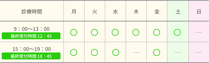 ● 休診日:木曜日午後・土曜日午後・日曜日・祝日